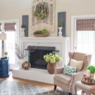 - ثلاثة مواضيع – يمكنك إنشاء تصميم غير عادي عن طريق وضع ثلاثة عناصر على رف الموقد. للتزيين ، استخدم عنصرًا كبيرًا واحدًا في المنتصف وقطعتين صغيرتين على الجانبين. على سبيل المثال ، يمكن أن تكون ساعة ضخمة في وسط رف الموقد ، وشمعدان واحد على كل جانب..