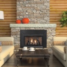 يمكن استخدام مدفأة الجزيرة المصنوعة من البوتا الاصطناعية للغرف الكبيرة. يتم إخفاء المدخنة المعلقة تحت الكسوة الحجرية ، ويتناسب الهيكل بأكمله جيدًا مع مظهر الغرفة.