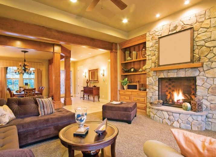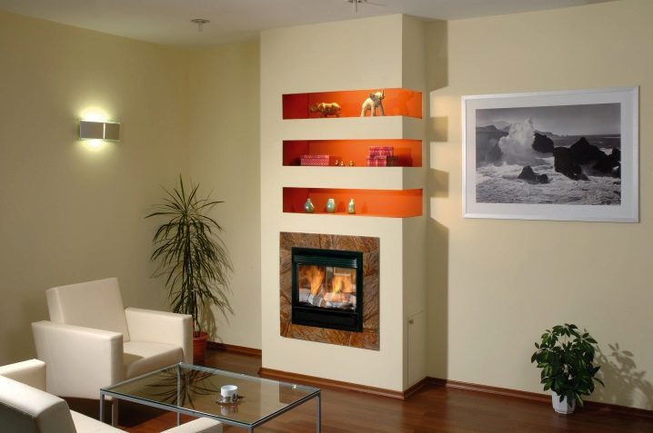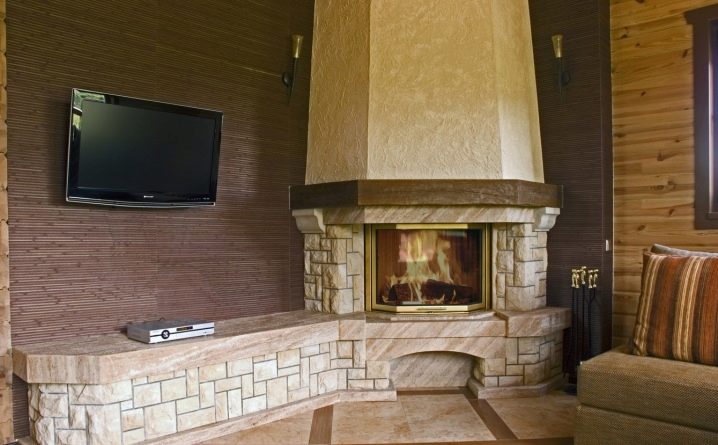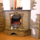 - يتم تثبيت مدفأة الزاوية في زاوية الغرفة وعادة ما تكون أقل شأنا من حجم الجدار ، لذلك ستكون هناك حاجة إلى مواد أقل لتزيينها. لكن هذا التصميم يخلق جوًا مريحًا تمامًا ويسمح لك بالجلوس حول شركة صغيرة..