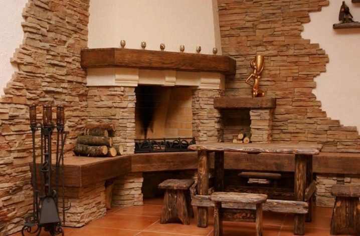 وبالتالي ، فإن التشطيب مطلوب فقط لجزئين من الموقد – البوابة والمدخنة. لكن العديد من الخيارات لمثل هذه المواقد المنزلية قد تحتوي على عناصر إضافية: مقصورات للحطب أو أرفف زخرفية للأشياء الصغيرة..