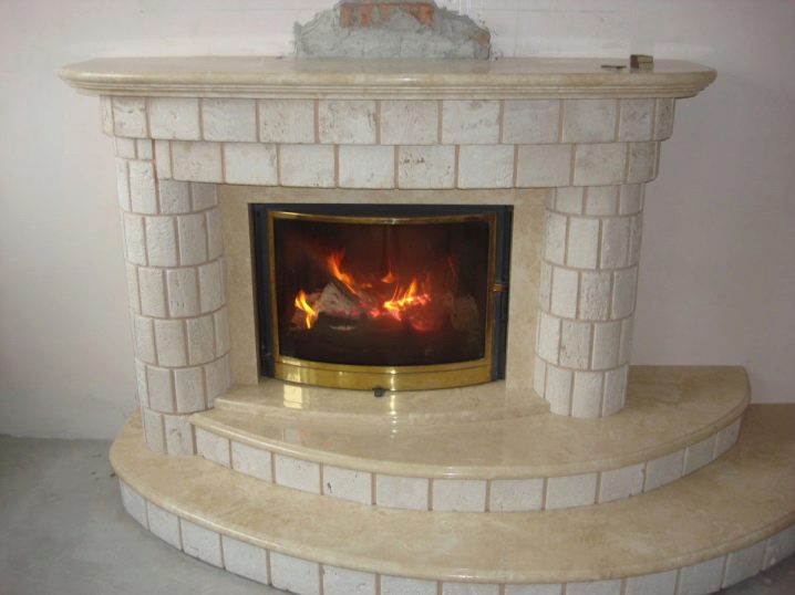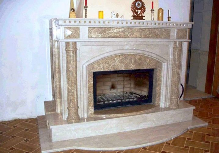 يتميز الرخام بأنسجة جميلة مع عروق ومجموعة متنوعة من الألوان. يفضل الكثير من الناس استخدام هذه المادة المعينة عند ترتيب مدفأة ريفية ، لأنها تمنح الداخل مظهرًا فاخرًا. تتميز الألواح الرخامية بقوة عالية وسعة حرارية ، بفضل المعالجة ، يمكن الحصول على أجزاء من أي شكل. لكن قطع هذا المعدن نفسه وطحنه وتركيبه شاق للغاية ، والمواد الخام غالية الثمن ، لذا فإن المدفأة ذات البوابة الرخامية ستكلف الكثير للعائلة..