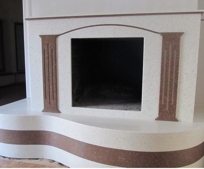 من بين الأحجار الاصطناعية لتزيين واجهة الموقد ، الأكثر شيوعًا هو الأكريليك. إنه مصنوع على أساس المكونات الكيميائية مع إضافة رقائق الرخام والجرانيت أو السيليكات والحجر المسحوق ومكونات أخرى. تسمح لك الأصباغ بعمل ألوان مختلفة لألواح الأكريليك. نظرًا للاحتفاظ بأشكال خاصة ، فإن الأجزاء لها سطح مستو ويمكن ربطها بسهولة بالغراء الأسمنتي. لا يمتص الأكريليك الغبار والأوساخ ، ويمكن تنظيفه بسهولة بقطعة قماش ، ولا ينبعث منه مواد ضارة في درجات الحرارة العالية.