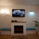 - مثبت على الحائط – يقع مقابل جدار الغرفة ، بشكل أساسي في وسطها. عادة ما تكون هذه النماذج هي الأكبر ، وهي مصممة لتدفئة الغرف الكبيرة. تعتبر المدفأة المثبتة على الحائط هي السمة الغالبة في الداخل وتلفت الأنظار على الفور. يمكن وضع العديد من الكراسي بذراعين حولها ويمكن لجميع أفراد الأسرة الاسترخاء..