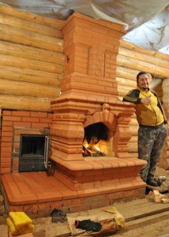 بعد الانتهاء من وضع الموقد بالكامل ، يبدأ الجزء الأكثر متعة من العمل – تصميمه الخارجي. يمكنك تزيين السخان المنزلي الخاص بك باستخدام مواد مختلفة: