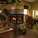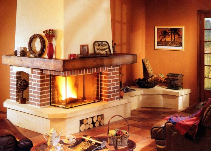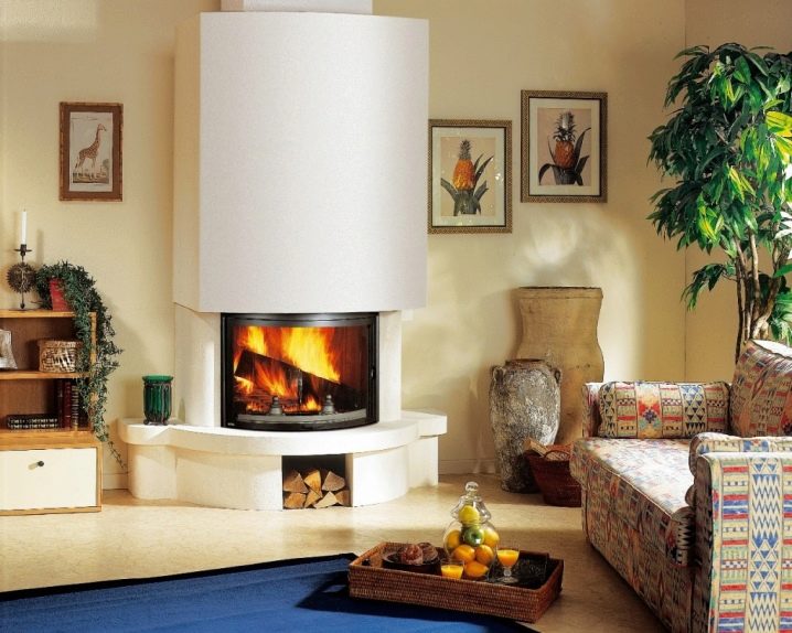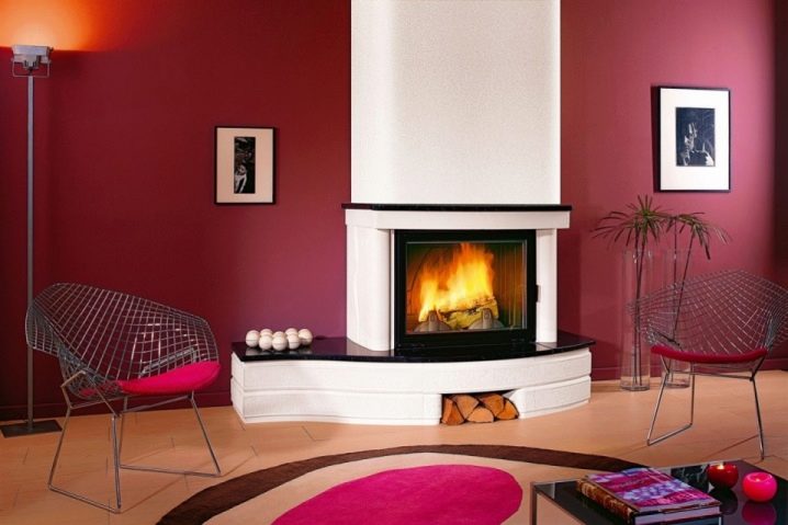 - يقع في الزاوية الخارجية (الخارجية). هذه المواقد مخصصة للغرف الفسيحة ذات التصميم غير القياسي. تقع غرف الاحتراق عند تقاطع غرفتين ، والمدفأة نفسها تزين غرفتين في وقت واحد ، لذلك يجب التعامل مع اختيار التصميم بعناية خاصة.