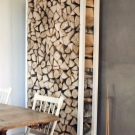 سيكون مثل هذا الحطب مفيدًا جدًا في أي منزل به مدفأة. بعد كل شيء ، بهذه الطريقة لن تكدس الحطب على الأرض وتفسد الأرضية. بالإضافة إلى ذلك ، مع صندوق النار ، لن تنتشر الحطام من جذوع الأشجار في جميع أنحاء المنزل. وأخيرًا ، إنه عنصر ديكور رائع..