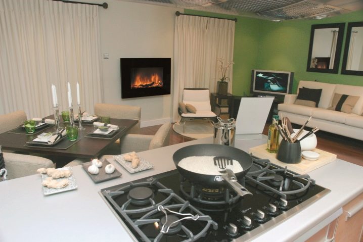 عادة ما تبدو المواقد الكهربائية مثل شاشة بلازما مع موقد لهب بالداخل. يتم تنفيذ مبدأ تشغيل هيكل الجدار عن طريق تحويل الكهرباء إلى طاقة حرارية. لمحاكاة عملية الاحتراق ، يتم وضع جذوع الأشجار الزخرفية والفحم في الجزء السفلي من صندوق الاحتراق. لمزيد من المصداقية ، يتم تثبيت مصابيح خاصة ومرآة في الموقد الصغير ، والتي تخلق معًا تأثير اللهب.
