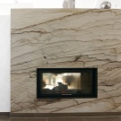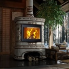 تمامًا مثل الخيارات السابقة ، تعتبر الخزف الحجري مثاليًا لمواجهة الموقد نظرًا لمزاياها: