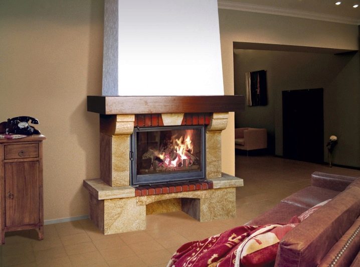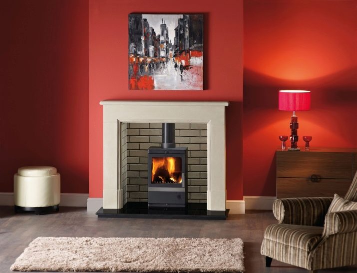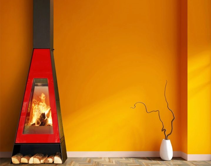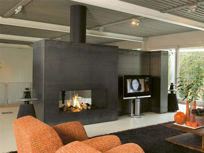 يجب تركيب المواقد المثبتة على الحائط بحيث يكون الجزء الطرفي مواجهًا للحائط. سيكون هذا الخيار مناسبًا بشكل خاص إذا كنت تريد تقسيم الغرفة إلى نصفين. يوجد في هيكل البوابة صندوق نيران معدني ، على الوجهين أو مغلق.