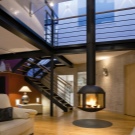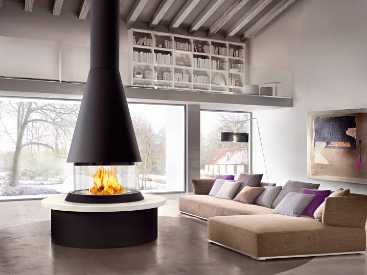 اكتسب أسلوب الدور العلوي شعبيته في الستينيات والسبعينيات من القرن الماضي. يتميز بأسقف عالية وغرف واسعة ذات جدران غير مغطاة بالبلاط. ستبدو مدفأة الجزيرة المعدنية ذات الأبواب الزجاجية رائعة في الغرف بهذا التصميم. ضع في اعتبارك أن الدور العلوي لا يوفر راحة الأسرة. لذلك ، يجب أن تحتوي الغرفة على أقل عدد من قطع الأثاث ومساحة خالية كبيرة..