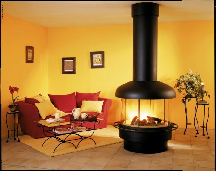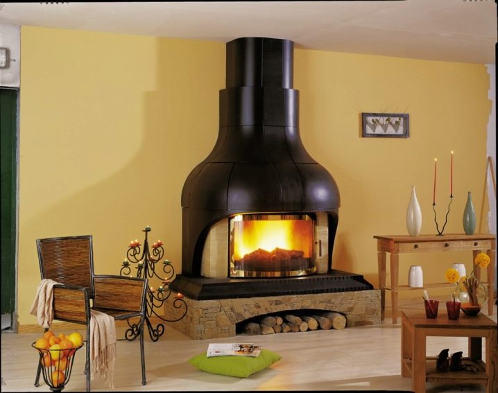 لا تلمس مواقد الجزيرة جدران المنزل. غالبًا ما يتم وضعهم في وسط الغرفة. هذه البوابة مصنوعة من الطوب والمعدن ، ويمكن أن يكون لها أي شكل.