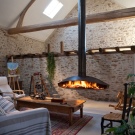 يعد الموقد المثبت على الحائط أحد أكثر خيارات الموقد شيوعًا وعملية. إنه ، كما يوحي الاسم ، يقع تحت الجدار. تصميم هذا الموقد عملي تمامًا – فهو يتصل بسهولة بمدخنة موجودة ولا يشغل مساحة كبيرة. الموقد المثبت على الحائط مفتوح من ثلاث جهات ويبدو أنيقًا جدًا في أي مكان داخلي.