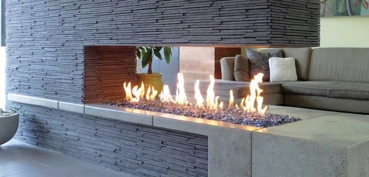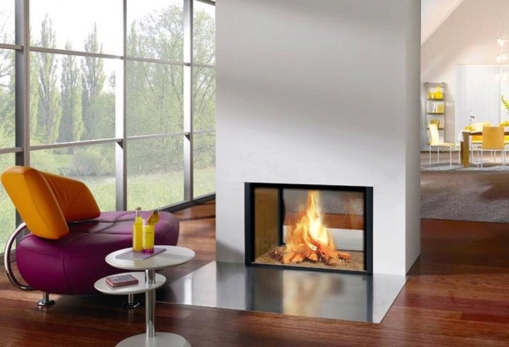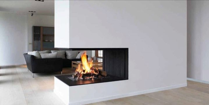 ستكون المدفأة ذات الوجهين هي المخرج عندما تريد تقسيم غرفة فسيحة بطريقة أخرى. من الملائم وضع نموذج لمدفأة ذات وجهين في البوابة بين غرف مختلفة ، مما سيوفر بشكل كبير عند تثبيت نموذجين وحل هذه المشكلة ببساطة.