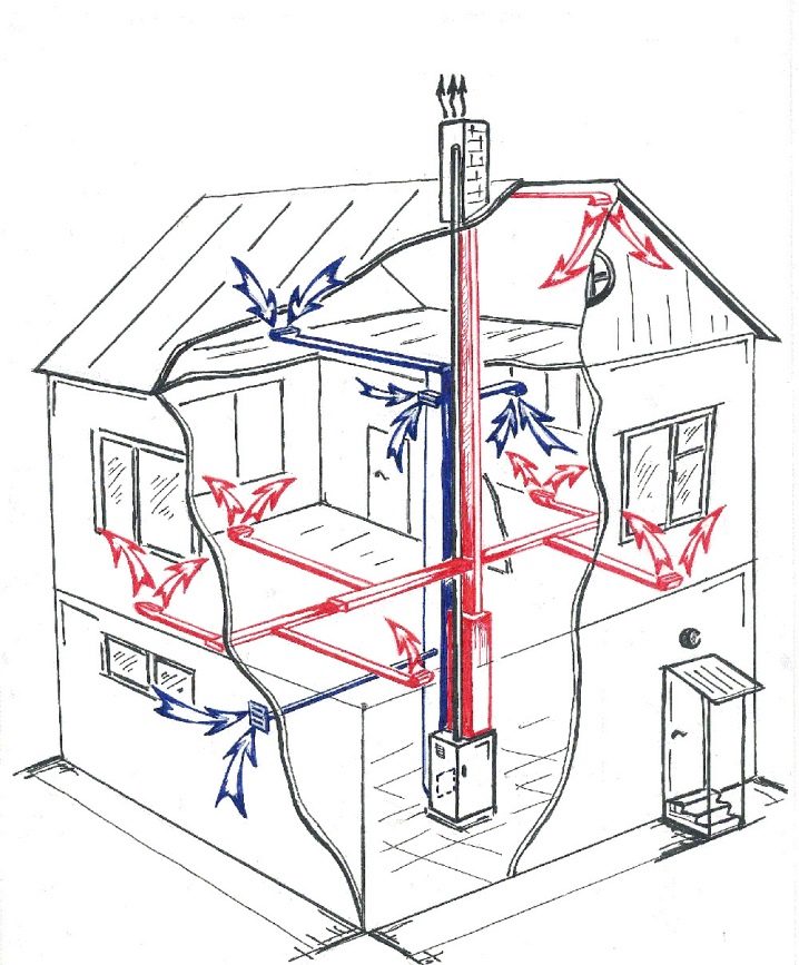 قنوات الاحتراق هي المسؤولة عن إزالة نواتج الاحتراق. وهي مجهزة بأي مدافئ. توزيع التهوية هو الهيكل الرئيسي في نظام تسخين الهواء. جودة تدفئة الغرفة تعتمد عليها..