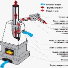 يسمح لك تصميم هذا الموقد بتسخين الهواء من اللهب. يتم تسهيل ذلك من خلال وجود القنوات الموجودة بين الجدران الخارجية وصندوق النار. أنبوب الهواء معزول. يدخل الهواء الدافئ الغرفة من خلال فتحة خاصة. الدخان يهرب من خلال قناة أخرى لها حق الوصول إلى المدخنة.