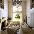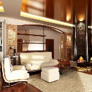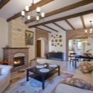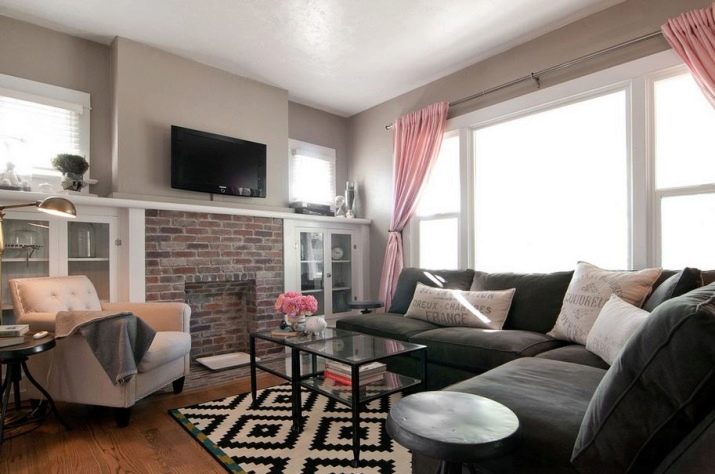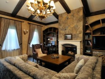 - بالنسبة للمدفأة ، يمكنك تحديد جدار منفصل ووضعه بحجر وبناء موقد. سيصبح هذا التصميم مركز غرفة المعيشة. النوافذ الطويلة تضيف الضوء والمساحة. فوق المدفأة ، يمكنك تعليق صورة أو صورة عائلية أو تلفزيون.