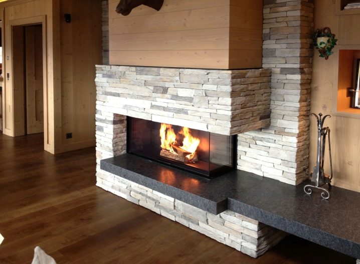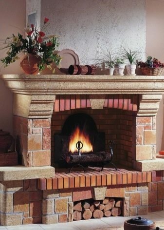 - إذا كنت تريد أن تكون القاعدة أكبر من مدفأة الكاسيت نفسها ، فأنت بحاجة إلى تزيين العناصر البارزة بألواح حجرية.