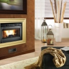 يوفر الباب الزجاجي أعلى معدل كفاءة – بقدر تسعين بالمائة. لا يسمح للهواء بالخروج عبر المدخنة. الباب مزود بفتحات خاصة صغيرة ، بفضلها يدخل الهواء بالداخل بقدر ما هو ضروري لحرق الحطب.