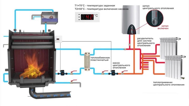 المواقد المغطاة بالماء هي تصميمات خاصة تشتمل أيضًا على غلاية ماء. يتيح لك ذلك توصيل هذه الآليات بنظام التدفئة المقترن بغلاية التدفئة..