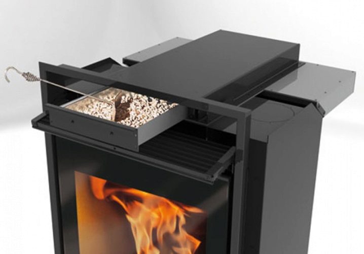 علاوة على ذلك ، غالبًا ما يتم إخفاء هذا النظام بأكمله في منافذ خاصة ، ومن الخارج فقط تكون اللوحة الأمامية مرئية. فترة حرق هذه المواقد أطول بكثير من تلك التي في النوع السابق..