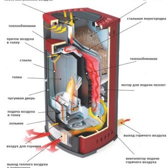 يشبه تصميم موقد الحطب موقد الحطب التقليدي ، ولكن هذا هو المكان الذي تنتهي فيه خصائصه العامة. في الداخل ، تم تجهيز هذه الأنظمة بأتمتة حديثة تسمح لك بتنظيم جميع العمليات الرئيسية في الداخل. تتكون غلاية الحبيبات من عدة أجزاء رئيسية ، والتي سننظر فيها بمزيد من التفصيل أدناه..