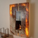 المواقد ذات تأثير الحريق عملية وآمنة ، ولا توجد أسئلة إضافية في مجال السلامة من الحرائق. بالإضافة إلى ذلك ، إنه عنصر زخرفي جميل للغاية..