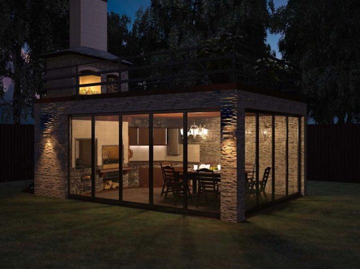 والنوع الأخير هو كشك حديقة مغلق. إنه مثالي للشواء في الشتاء والصيف وفي أي طقس. ستغلق على نفسك من الجيران المزعجين والطقس السيئ والطقس البارد. سوف يسخن الموقد الغرفة بسهولة ، ويحررك من أغلال الملابس الخارجية ويسمح لك بالراحة الجيدة حتى في الشتاء الأكثر برودة. سيتطلب مثل هذا الشرفة إعدادًا شاملاً وتكاليف نقدية كبيرة..