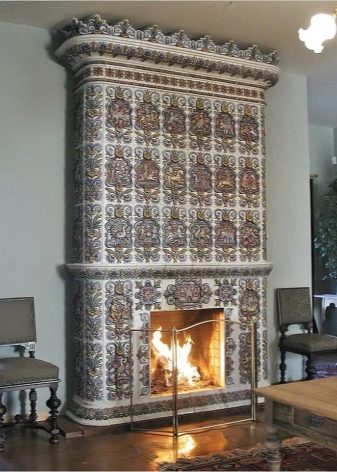 البلاط – بلاط خاص لأفران المواجهة ، وهو محمي تمامًا من التشوه ويتحمل عددًا كبيرًا من دورات التبريد بالتسخين. على الجانب الخلفي ، توجد حلقات – إسقاطات خاصة تتصل بها البلاطات ببعضها البعض ويتم ضغطها في المحلول. تقنية وضع البلاط غريبة. أولاً ، يتم تثبيتها معًا بواسطة دبابيس وهوائيات سلكية ، ويتم سكب الرؤوس بالطين ، وتثبيتها على الموقد ، ثم يتم وضع جدار الموقد الرئيسي..