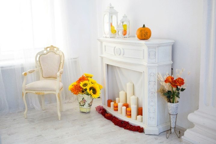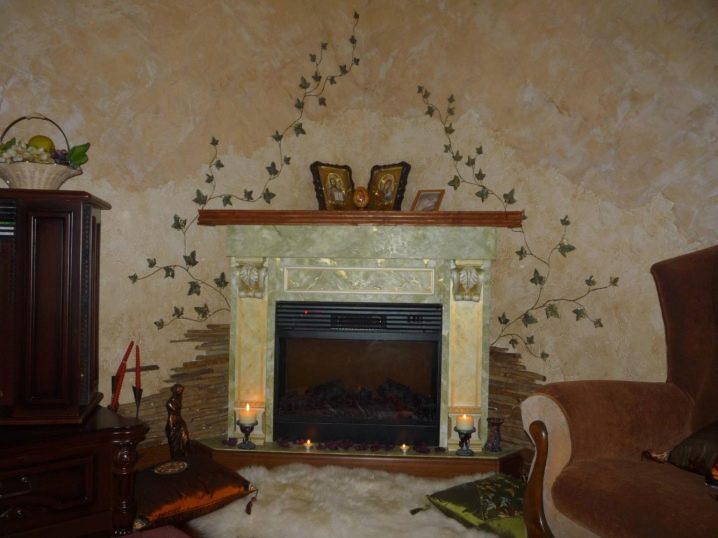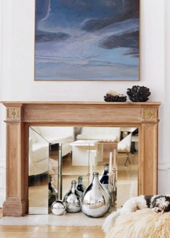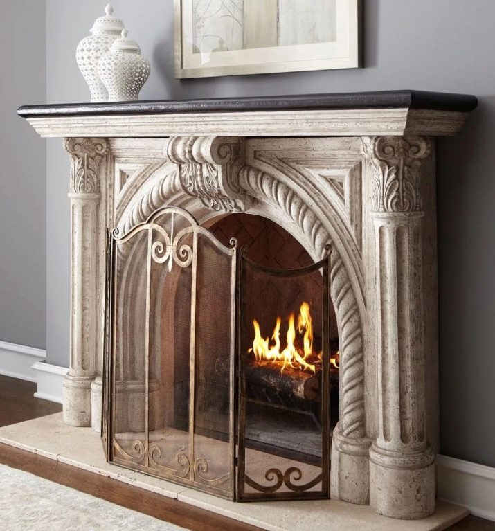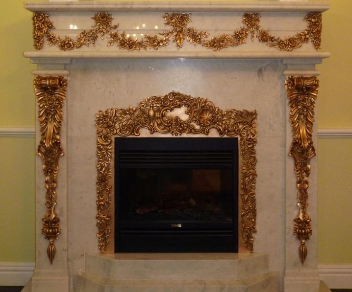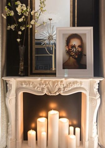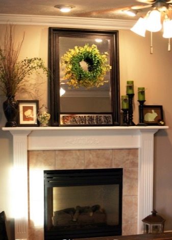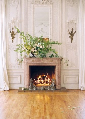 يجب أن يكون ديكور الموقد نفسه ضئيلًا. يكفي صب صغير من الجص مطلي بطلاء ذهبي.