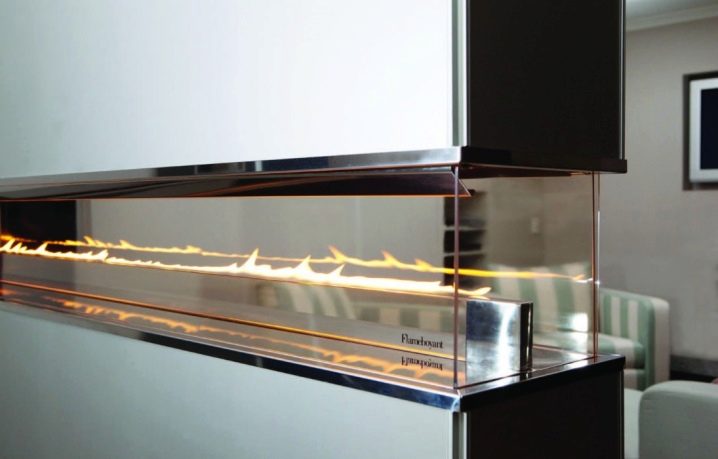 يحتوي الزجاج على عدد من المزايا: فهو يسمح لك بمراقبة اللهب دون الإضرار بالصحة والداخل ، حيث يمنع الدخان والشرر والفحم المتساقط عن طريق الخطأ من دخول الغرفة. بالإضافة إلى ذلك ، تقدم الشركات المصنعة مجموعة واسعة من هذه المواد من الخيارات البسيطة إلى الأشياء المثيرة وغير العادية – ملونة ، منقوشة ، مع أنماط.