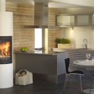 Nordpeis Geilo عبارة عن مدفأة مستديرة بأبواب قابلة للطي يمكن أن تكون ميزة مميزة لأي ديكور داخلي. لتصنيع الكسوة ، تم استخدام مادة حديثة – مركب. تتميز هذه المادة بفصل واضح للحدود بين نوعي التشطيبات. يعمل صندوق النار المصنوع من الحديد الزهر على الخشب ويمكنه الاحتفاظ بالدفء لفترة طويلة.
