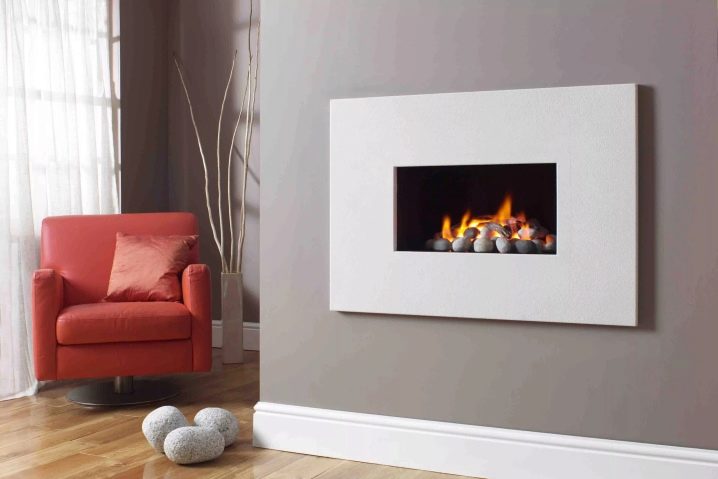 - مدفأة مثبتة على الحائط. الفرق بين هذا النوع من الموقد والباقي هو أن كل أو جزء منه ليس في الحائط ، ولكن بالقرب منه. هذا مناسب للغاية إذا كان من الضروري تثبيت الموقد في منزل كامل. تم تثبيت الموقد بالقرب من جدار أو قسم مع عزل من الطوب.