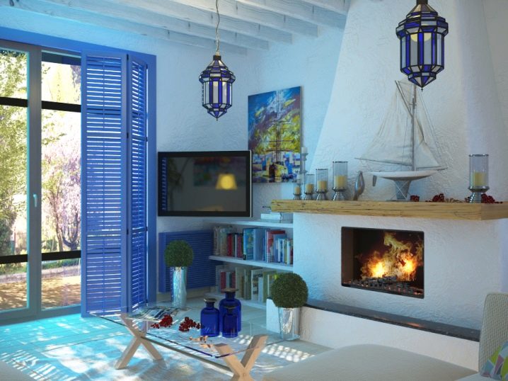 يعد موضوع تزيين الموقد البحري في الصيف مناسبًا جدًا. تبدو الحلي والتحف المختلفة جميلة: الأصداف ، الصناديق ، الصناديق ، نماذج القوارب ، إلخ. تبدو الأجزاء الداخلية باللونين الأبيض والأزرق مع الخشب الطبيعي عضوية ومكلفة.