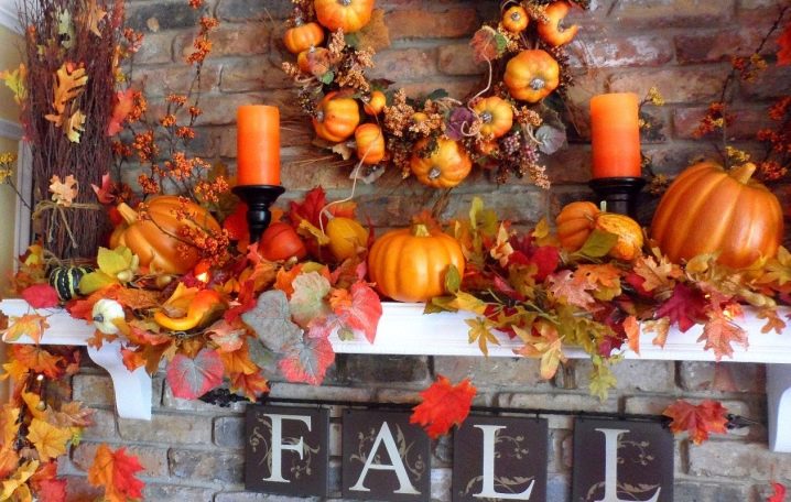 المواد الطبيعية جميلة بشكل خاص في ديكور الخريف. الاختيار في هذا الصدد ضخم: الأغصان المجففة والأوراق والتوت والفواكه والخضروات الناضجة والأقماع والمكسرات والسنيبلات. يمكن أن يكون تكوين جميع العناصر المدرجة بمثابة أساس لديكور الموقد. يمكنك صنع أكاليل زهور أو أكاليل أو باقات يمكن وضعها على الحائط وعلى رف الموقد..