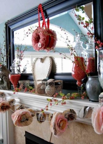 لطالما كان من المعتاد أن يمتلئ عيد الحب بالألوان الوردية الرقيقة والألوان الحمراء الزاهية. كل من الأحمر والوردي يرمز إلى الحب. في هذه العطلة الخفيفة والحساسة في المنزل ، يمكنك بسهولة خلق جو رومانسي مع القلوب والكرات والخرز. بحلول 14 فبراير ، يمكنك شراء جميع سمات العطلة في المتجر ، أو يمكنك تجربتها بنفسك ، واستثمار الحب والدفء في إنشائها..