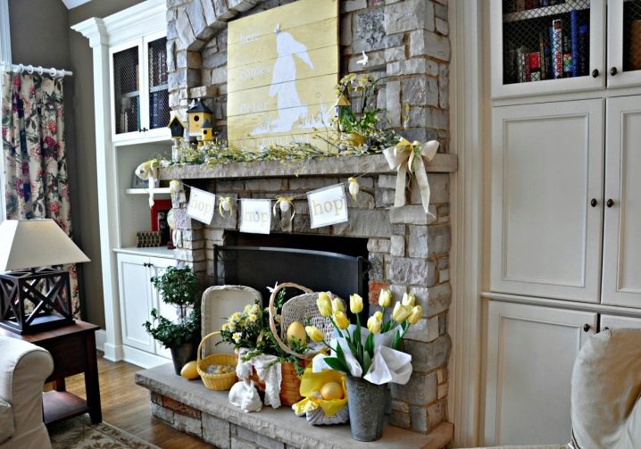 يمكن خلق جو احتفالي حتى في عيد الفصح. في هذا اليوم المشرق ، يكون للنار معنى خاص ، لأن الأسرة كلها تتجمع في الموقد. رف الموقد مثالي لتزيين العطلات. يمكنك وضع كل من كعك عيد الفصح التقليدي والبيض وأكاليل الزهور عليها..