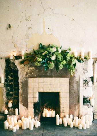 بالنسبة لحفل الزفاف ، تم تزيين الموقد بما لا يقل عن أي عطلة أخرى. الموقد هو رمز لعائلة جديدة ، لذلك يجب تسليط الضوء عليه في هذا اليوم. الشموع الكبيرة والزهور النضرة والشرائط العريضة وغير ذلك الكثير مناسبة للزينة. يمكنك تعليق صور العروس والعريس على الحائط وتزيينها بإطارات مشرقة بشرائط من الساتان. هناك الكثير من الخيارات ، الشيء الرئيسي هو عدم الخروج من النمط العام للاحتفال.