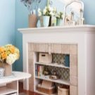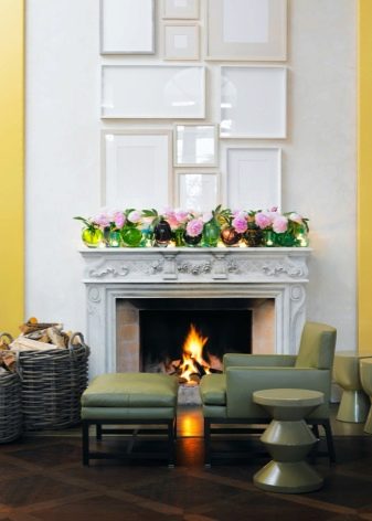 الربيع ليس وقت الحب فحسب ، بل هو أيضًا وقت للتحول والحياة الجديدة بشكل عام. لذلك ، في هذا الوقت ، تم تزيين الموقد وفقًا لموسم العام: الزهور الرقيقة والمساحات الخضراء. هنا يمكنك تجربة الزهور الطازجة: فهي مناسبة مثل الزنابق والبنفسج المحفوظ في أصص ، أو باقات من الورود والفاوانيا. أو يمكنك رسم أو قص التطبيقات على موضوع الربيع وتعليقها في إطارات فوق المدفأة.