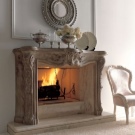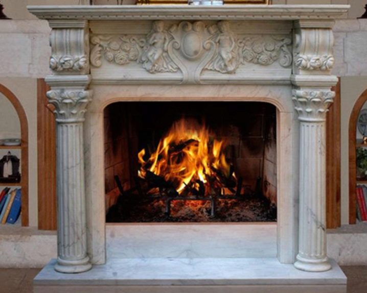 - مدفأة ضخمة مزينة بأعمدة بيضاء وجص أصلي.