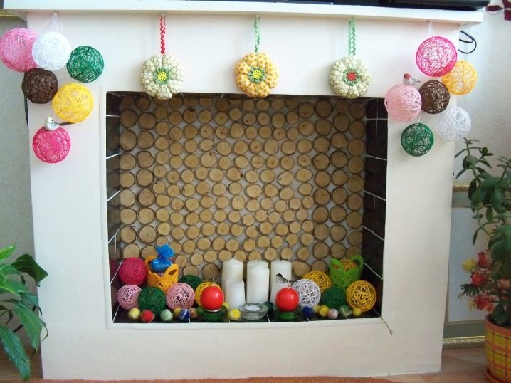 - كرات وزهور من المنسوجات محلية الصنع تحول بشكل رائع مدفأة مزخرفة وتملأ المنزل بمزاج جيد.