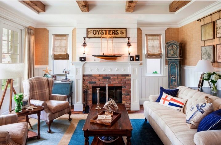 يعد موضوع تزيين الموقد البحري في الصيف مناسبًا جدًا. تبدو الحلي والتحف المختلفة جميلة: الأصداف ، الصناديق ، الصناديق ، نماذج القوارب ، إلخ. تبدو الأجزاء الداخلية باللونين الأبيض والأزرق مع الخشب الطبيعي عضوية ومكلفة.