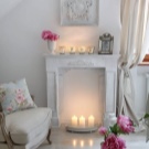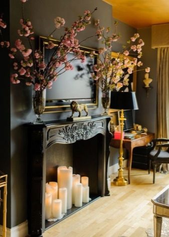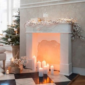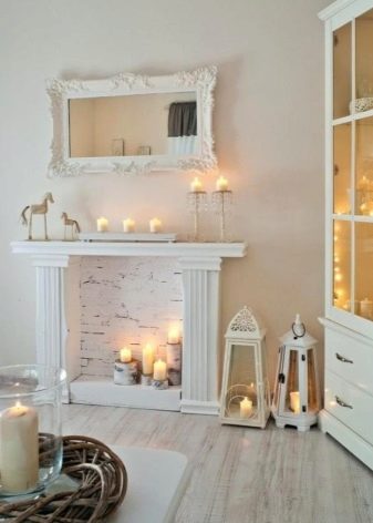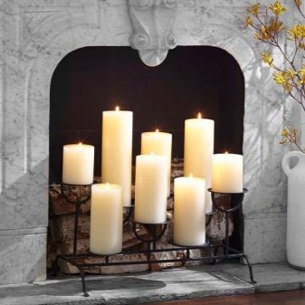 إذا كنت ترغب في إنشاء مدفأة بمصدر طبيعي للنار ، فاستخدم الشموع الشمعية الصلبة والمتينة. يمكن تثبيتها مباشرة في مكانة الموقد أو الدعامات الخاصة – الشمعدانات. يمكن أن تكون معدنية أو زجاجية وتأتي بأشكال وأحجام مختلفة..