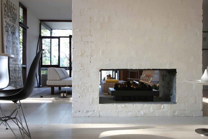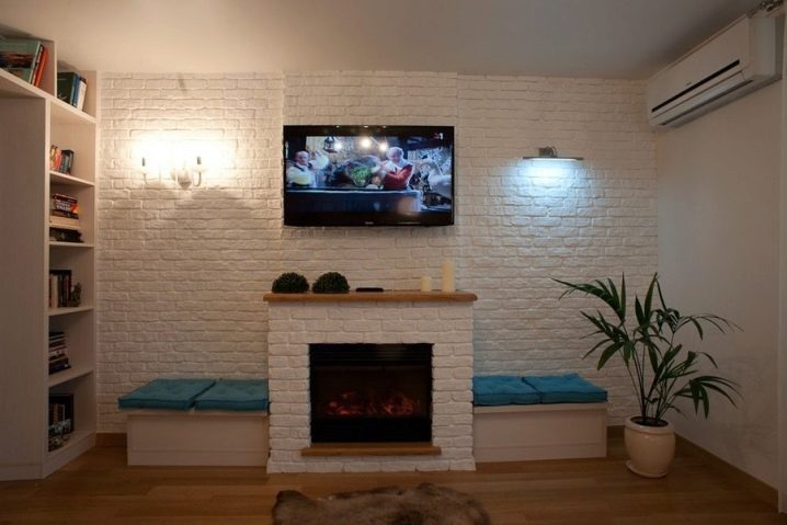 يبدو الطوب غير المكتمل في مواجهة الموقد رائعًا في المناطق الداخلية بتنسيق حديث أو “كلاسيكي” ، في حين أن لون المادة نفسها ليس مهمًا ، فإن وضعها أكثر أهمية. يبدو الموقد المصنوع من الطوب الأبيض أنيقًا بشكل خاص ويسمح لك بإنشاء مساحة داخلية غير مزعجة ومقاسة ومريحة قدر الإمكان..