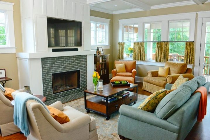 يتم تثبيت أريكة أو كراسي ناعمة بذراعين بشكل تقليدي مقابل المدفأة من أجل الاستمتاع الكامل ببيئة المنزل المريحة..