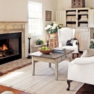 يتم تثبيت أريكة أو كراسي ناعمة بذراعين بشكل تقليدي مقابل المدفأة من أجل الاستمتاع الكامل ببيئة المنزل المريحة..