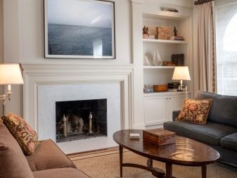 تبدو المدفأة البيضاء جيدة في الغرف الفسيحة وحتى غرف المعيشة الصغيرة ، لذا من السهل بشكل خاص الجمع بين الموقد والعناصر الداخلية الأخرى.