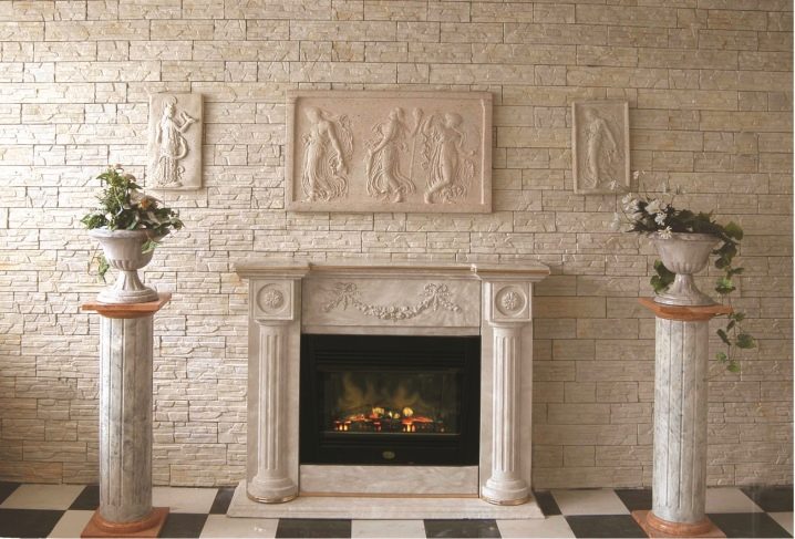 - كلاسيك. لا تشوش المنازل المزينة بهذا النمط بتفاصيل غير ضرورية. قطع أثاث عملية وعناصر داخلية أنيقة وألوان باستيل ومساحة خالية قصوى. تتناسب المدفأة الحجرية القديمة الجيدة تمامًا مع هذا الجو. يمكن أن تكون قديمة بشكل مصطنع ، مما سيضيف لونًا إلى الداخل..