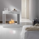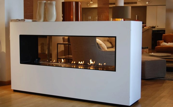 يتم تقديم حل آخر مثير للاهتمام في شكل مدفأة قائمة بذاتها على الوجهين ، سيكون لهبها مرئيًا لأي شخص في الغرفة. في هذه الحالة ، من المهم الاهتمام بالامتثال لمعايير السلامة من الحرائق – بحيث يتم الحفاظ على المسافة المطلوبة من جميع الأشياء في الغرفة. لهذا السبب ، فإن المدفأة القائمة بذاتها على الوجهين مناسبة لمساحة ذات مخطط مفتوح..