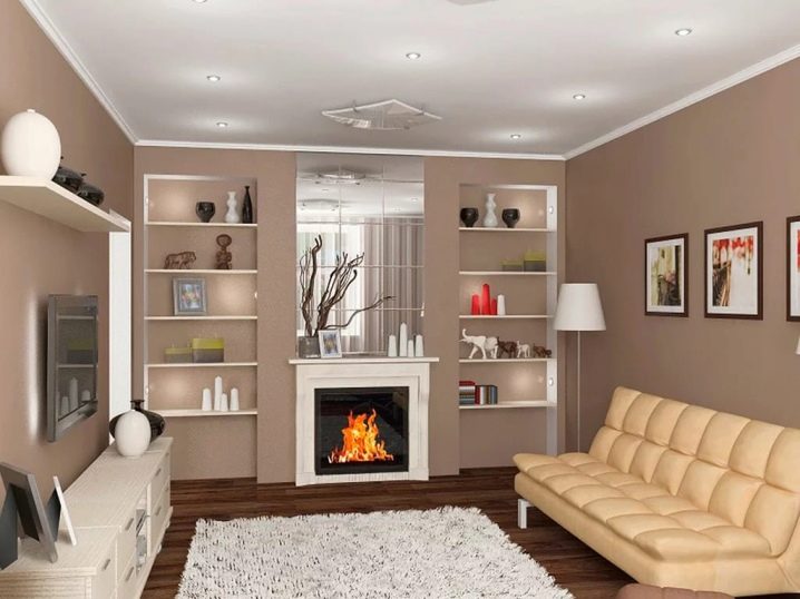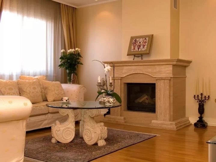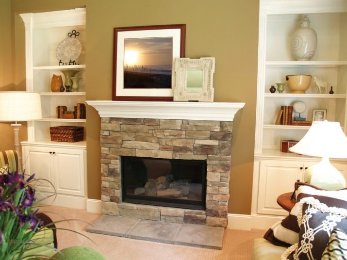 أولاً ، ضع جزء الإطار من الموقد ، ولكن أولاً وقبل كل شيء ، عليك التحقق مما إذا كانت الأرضية يمكن أن تصمد أمام هذا الهيكل الثقيل نوعًا ما. الميزة الإيجابية لمدفأة الطوب المزخرفة هي أن هذا العنصر الداخلي ، كقاعدة عامة ، لم يعد يتطلب التشطيب ، حيث يمكن اعتبار الطوب بالفعل عنصرًا من عناصر الديكور ، وهو متعدد الاستخدامات ويمكن أن يتناسب بسهولة مع أي مكان. داخل هذا الهيكل ، يمكن وضع بوابة كهربائية لمحاكاة الموقد ، والتي يمكن حتى استكمالها بجهاز خاص يصدر أصواتًا تشبه طقطقة الخشب المحترق وأصوات اللهب في مهب الريح. مثل هذا الموقد ، على الرغم من ضخامته ، يبدو أنيقًا وطبيعيًا للغاية. يمكن استكمال تصميمه بخطوط خشبية حيث يمكنك وضع الشموع والصور العائلية وساعات الطاولة الأنيقة عليها.