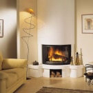 النوع التالي هو موقد زاوية. يشغل هذا النموذج مساحة أقل قليلاً في الغرفة ، على عكس النوع السابق. إنه مثالي لغرفة صغيرة مريحة. ظاهريًا ، إنها بوابة بسيطة ، وعادة ما يكون تصميمها بسيطًا جدًا.